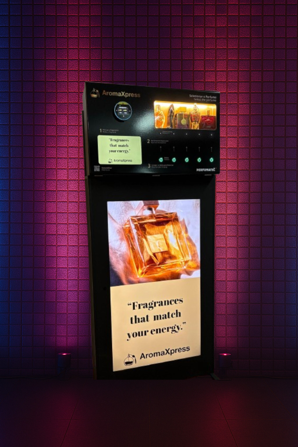 A AromaXpress é uma solução inovadora de vending e comunicação digital, que alia perfumes premium a tecnologia de ecrãs interativos. Seja em discotecas, ginásios, hotéis ou eventos, oferecemos uma experiência elegante, prática e memorável – ao alcance de todos.